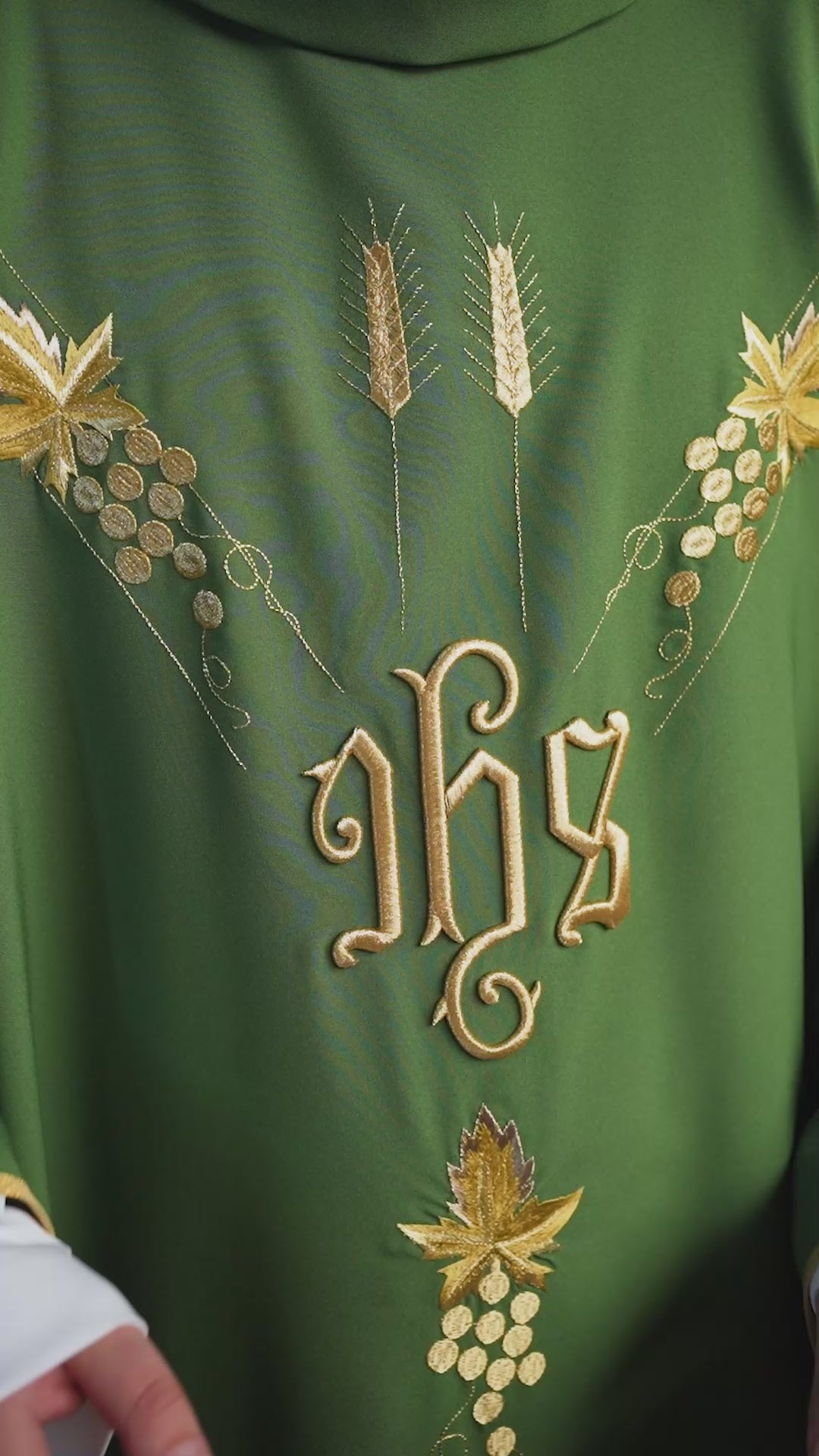 Gesticktes Messgewand mit IHS-Symbol Trauben Grün