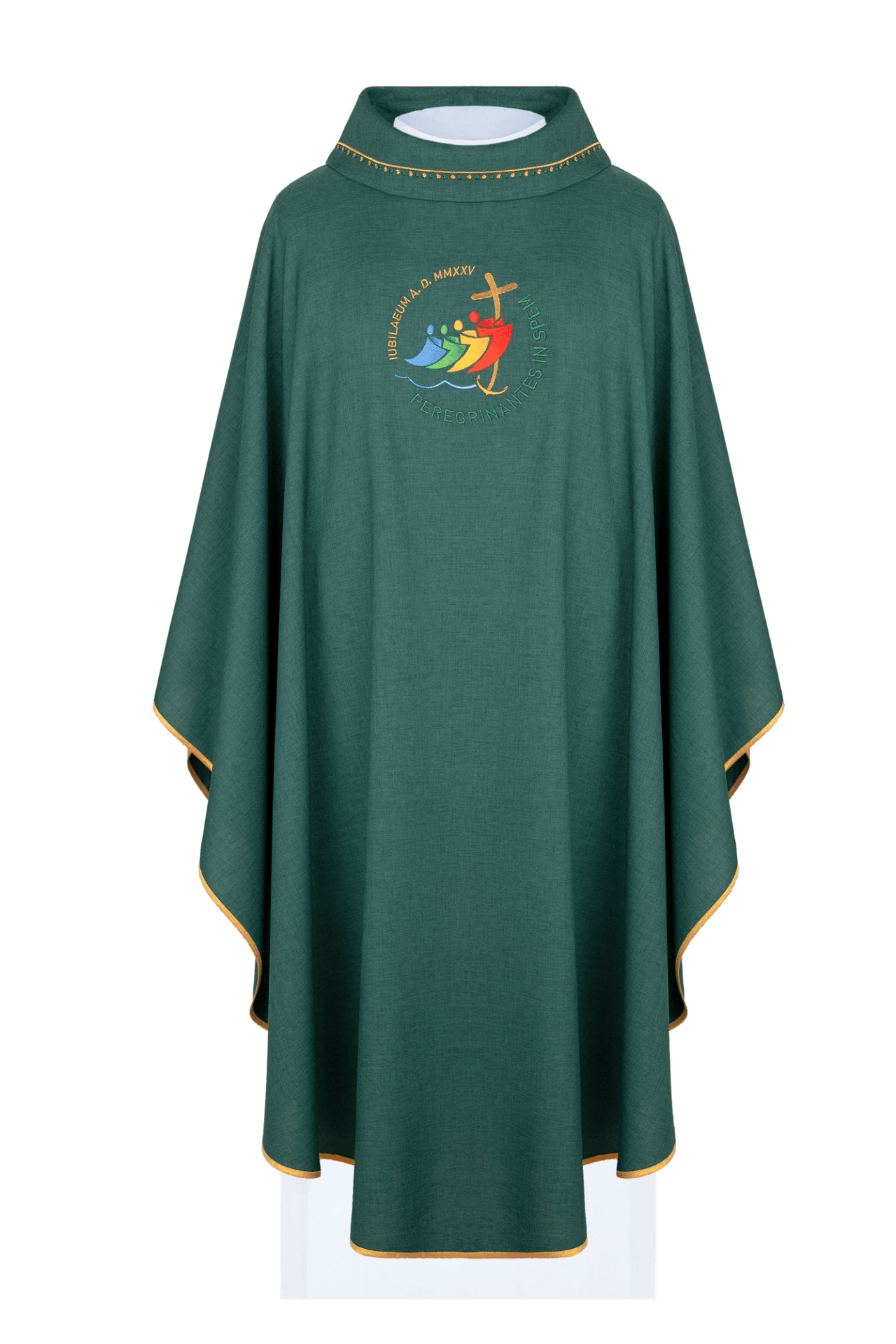 Messgewand mit Jubiläumsstickerei mit Kragenbesatz in Grün