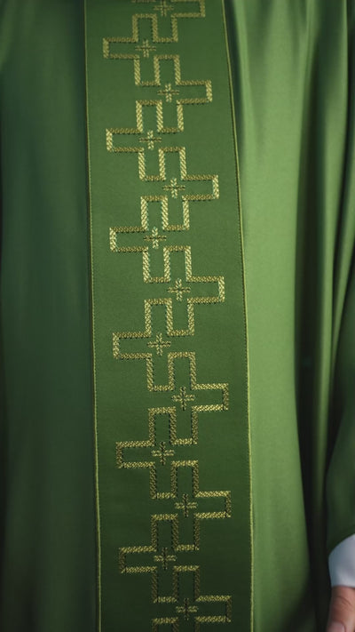 Diese Messgewand mit einem reich bestickten Gürtel mit Kreuzen in Grün ist ideal für das Tragen während: